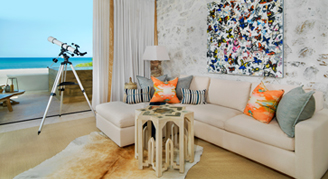 Rooms feature an ocean view and a separate seating area.