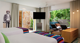 Rooms are located within the lush jungle along the hilltop or perched lakeside and feature Mexican tiled floors and accents, locally-inspired décor, modern furnishings, a sliding wall of floor-to-ceiling windows, creative wall murals, a Nespresso coffee maker, a soaking tub, and the signature W bed. Complimentary wireless internet access is offered throughout the resort.