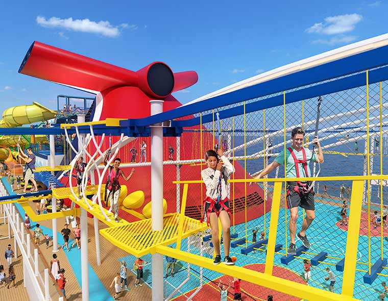 Ready for an adventure? Offering 13 decks and a world of fun at your fingertips, Carnival Adventure is perfect for families, couples and groups of friends who are looking to experience it all. Sailing from Sydney, plus select cruises from Melbourne and Singapore, Carnival Adventure has a huge variety of activities on board, including exciting waterslides, four relaxing pools, a thrilling Edge Adventure Park, plus a huge range of bars, entertainment and dining options. You might start your day at the waterslides, or Edge Adventure Park, complete with ziplining, rock climbing and abseiling. Then enjoy a lazy morning poolside, followed by a delicious family lunch. Or, how about a relaxing massage at the day spa while the kids have the time of their lives in the kids clubs? Throw delicious dining at Luke’s Bar & Grill, great bars, and world-class entertainment into the mix and you’ve got yourself a holiday lineup that can only be described as an adventure — a Carnival Adventure. We can’t wait to welcome you onboard!