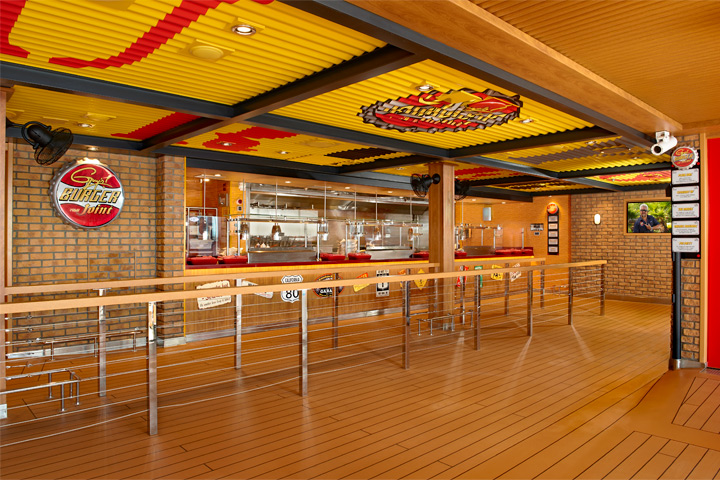 Guy’s Burger Joint: Carnival has teamed up with celebrity chef Guy Fieri to bring all the authentic appeal of a roadside burger shack to Guy's Burger Joint, the cool poolside spot for hot burgers and hand-cut fries. Try a fresh-off-the-grill burger Guy's way, or take it off-road to the toppings bar and truly make it your own.