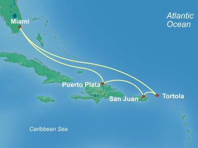 Powdery white-sand beaches, lush green mountains, and a sheltered yacht-filled harbor characterize the island of Tortola, where the past of the West Indies meets the present of the BVI. The largest island in the chain, Tortola offers a variety of exciting vacation possibilities. The protected anchorages at Brandywine Bay, Cane Garden Bay, Hodge's Creek Marina Cay, Soper's Hole, and Trellis Bay are ideal for boaters. Secluded palm-shaded beaches at Apple Bay, Brewer's Bay, Elizabeth Beach, Josiah's Bay Beach, Long Bay Beach, and Smuggler's Cove make for excellent swimming and snorkeling. There are also many well-equipped facilities for fishing, snorkeling, scuba diving, or horseback riding. Wander through centuries-old ruins such as the Dungeon, Fort George, Fort Recovery, the Mount Healthy Windmill, and Callwood's Rum Distillery, which is still in operation, and explore Tortola's history at the BVI Folk Museum in Road Town. Main Street in Road Town, the capital city, has an array of shops and restaurants, offering everything from local spices, jams, rums, and soaps to hand-crafted jewelry, silk-screened fabrics, and local art. The cuisine of Tortola reflects the island's rich cultural mix, whether it's a four-star dinner at a converted sugar mill or a delicious West Indian roti at a pastel-painted cottage. Local delicacies such as fresh lobster, conch, spicy goat, curries, and Johnny Cakes make each meal memorable. Escape to the cool slopes of Sage Mountain National Park, where traces of the primeval rain forest can still be seen at higher elevations. On the mountain ridge that runs through the island, observe local Caribbean life with its gentle rhythms, farms, settlements, and churches. At Mount Healthy National Park and Queen Elizabeth National Park, rock outcroppings and vertical guts, or dry steam valleys, expose the deep, rich earth of this volcanic island. In Road Town, the J.R. O'Neal Botanic Gardens offer peaceful walks through pergolas and pathways covered with colorful vines, as well as a miniature rain forest and a fern house. The people of Tortola are friendly and known for their warmth and hospitality. There are a wide variety of places to stay, ranging from campgrounds to luxury resorts and private villas. Tortola is also an ideal point from which to explore the other British Virgin Islands. Regular ferries, private and crewed yachts, and planes travel daily to the other islands of the BVI.
