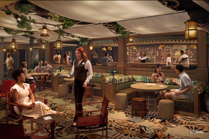 Skipper Society: Relax and unwind at this exotic, adult-exclusive lounge that pays homage to the waterway adventures on the world-famous Disney Parks attraction, Jungle Cruise.