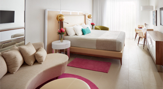 Suites are located in the adults-only and multi-generational sections, and feature a view of the ocean. Additional amenities include a wrap-around balcony, a separate sitting area, double sinks in the bathroom, an aromatherapy menu and direct access to the lazy river.