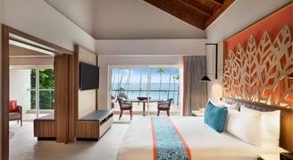 Adults only. Suites feature an ocean view, bedroom, separate living area and a private balcony or terrace. Additional amenities include a mini-bar refreshed daily with soft drinks, bottled water and beer as well as an in-room safe, hair dryer, direct dial telephone, and satellite TV.