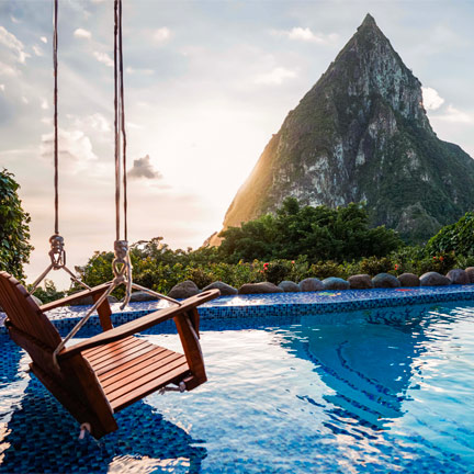 This upscale resort enjoys stunning views of Piton mountains floating upon the Caribbean Sea. This resort welcomes guests 16 and over.