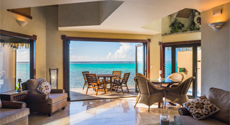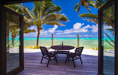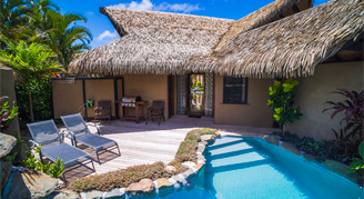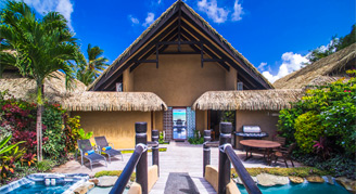 Two-bedroom Villas are only a few steps to Muri Lagoon beach, and are gated leading into a private courtyard with a private swimming pool and waterfall feature. Additional amenities include decks on both the lagoon and pool sides of the villa, sun loungers on both decks, fully equipped kitchen, Italian espresso machine, TV with surround sound system and movie selection.