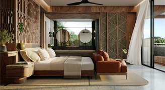 This expansive four-bedroom villa offers immersive indoor–outdoor living with panoramic Pacific views, a private pool and a plunge pool. Three of the bedrooms include king-size beds, while the other has two queen-size beds. Each bedroom serves as a tranquil retreat with marble bathrooms and refined finishes.