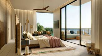This two-bedroom residence offers immersive indoor–outdoor living with ocean views, a full kitchen and a plunge pool, providing a peaceful and refreshing retreat. The first bedroom features a king-size bed, while the other has two queen-size beds.