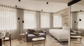 This urban style suite offers a king-size bed, seating area, walk-in shower, 55-inch Smart TV, and upgraded toiletries including bathrobes and slippers in addition to its standard amenities.