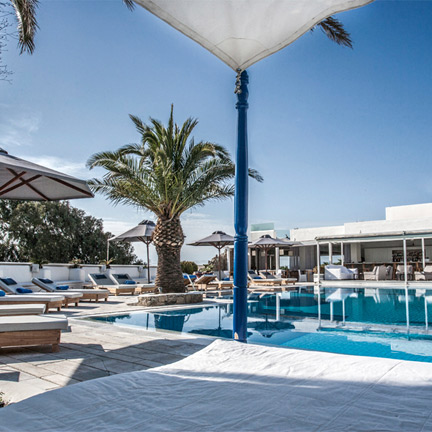 Combining a laid-back Mediterranean environment with genuine Greek hospitality, this sparkling cosmopolitan hotel offers splendid views of the sea with easy access to beaches and Mykonos town.
