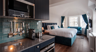 City-view studios are perfectly proportioned to offer contemporary studio living for two. Featuring stylish decor and comfortable furniture, topped with beautiful views of the city skyline and Princes Street.