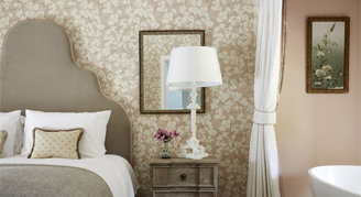 The Majestic Suite is bright and airy and with floor to ceiling windows, this unique and exquisitely designed "home away from home" is bathed in light. The wallpapered drawing room enjoys views of Jacob sheep and the walled garden. This suite features a super king bedroom – and a spacious dressing room.