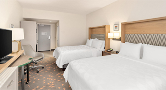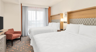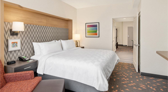 Rooms and suites provide all the comforts of home with plush bedding, blackout shades, a microwave and a mini-fridge. Bathrooms feature a separate walk-in shower and bathtub.