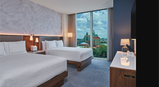 Universal Aventura Hotel is the modern and stylish place to stay. The hotel is within walking distance to Universal Volcano Bay and offers great views of all three Universal Orlando theme parks and is underscored by a design that is vibrant, free-flowing and calming. It's your chill zone, your party place, your hangout, your refuge. And it's just plain cool.