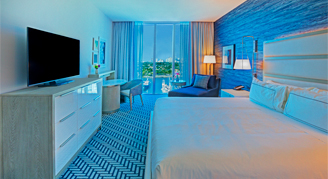 Watch the boats go by on the Intracoastal Waterway directly across the street through floor-to-ceiling windows. This room offers a king bed outfitted in high-quality linens with plush pillows, bath amenities, a lavish bathrobe, slippers, 55-inch flat-screen HDTV, mini-fridge, spacious work desk with ergonomic chair, Keurig coffee maker and an in-room safe.