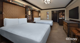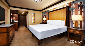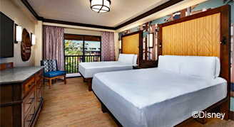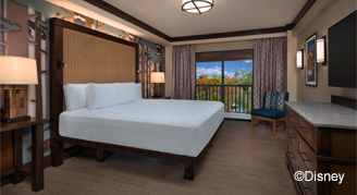Rooms feature views of Bay Lake, the woodlands or the interior Courtyard. Also included is a private porch or balcony, and a queen-size pull-out sofa bed.