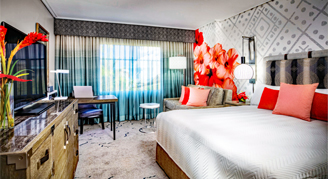 Gaze out upon the hotel's spectacular lagoon pool or waterway. The 335-square-foot Water-View Room features two queen beds, and separate bath and vanity areas. Maximum occupancy of five guests.