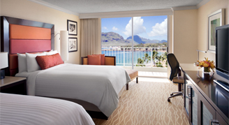 Guest rooms feature deluxe bedding including down comforters, fluffy pillows and designer duvets, as well as his-and-her robes and slippers, and in-room Kauai coffee service.