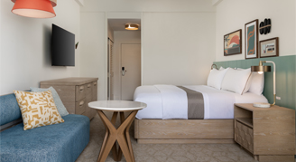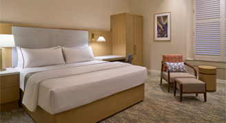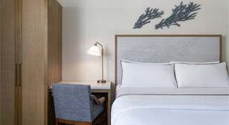 Newly spacious one-bedroom suite offers premium relaxation. Room features include robe, slippers, mini fridge, coffee maker and premium movie channels.