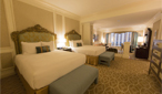 Suites are located in The Venezia Tower and feature pillow-top beds, Egyptian cotton sheets, a 400-count wool throw, two 32” flat screen LCD HDTVs, a sunken living room, a dining table that seats three, a 130-square foot bathroom featuring a Roman tub with a glass enclosed shower and a 17” LCD HDTV, a DVD and CD player, and remote-controlled Roman shades and curtains.