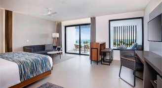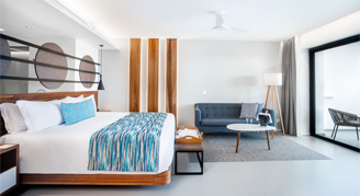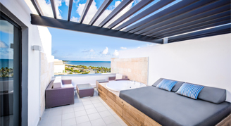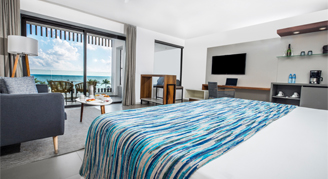 Suites are feature an oceanfront view and are located on the fifth floor. Additional amenities include a rooftop terrace with an outdoor Jacuzzi. This room category is not recommended for the mobility challenged. Guests 18 and older are welcome in this category.