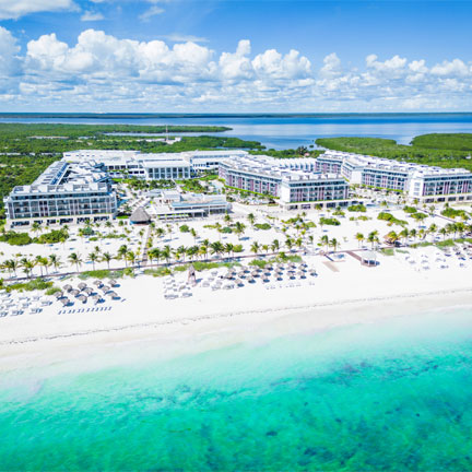 This modern resort is located on the white sands of Costa Mujeres and provides designated areas for both families and adults to relax. Offering many ways to unwind, guests may choose to enjoy one of 12 pools, seven restaurants, 13 bars, or Majestic Spa with three designated areas to relax. Each of the resort's spacious 570 suites either have a jacuzzi, plunge pool or a swim-out pool. Guests of the adults-only Elegance Club stay in an exclusive area of the hotel with additional amenities, such as exclusive pools, bars, butler service, two oceanfront lounges, and upgraded room amenities. Wireless internet is provided throughout the resort.