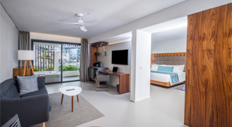Suites are feature a resort or pool view and are located on the fifth floor. Additional amenities include a rooftop terrace with an outdoor Jacuzzi. This room category is not recommended for the mobility challenged.