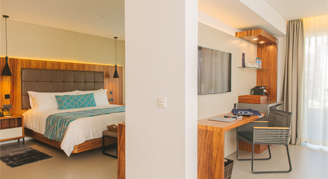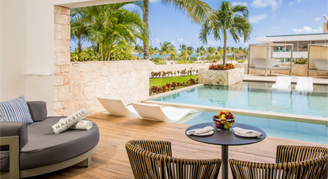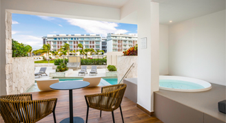 Suites are feature a resort or pool view and are located on the fifth floor. Additional amenities include a rooftop terrace with an outdoor Jacuzzi. This room category is not recommended for the mobility challenged. Guests 18 and older are welcome in this category.