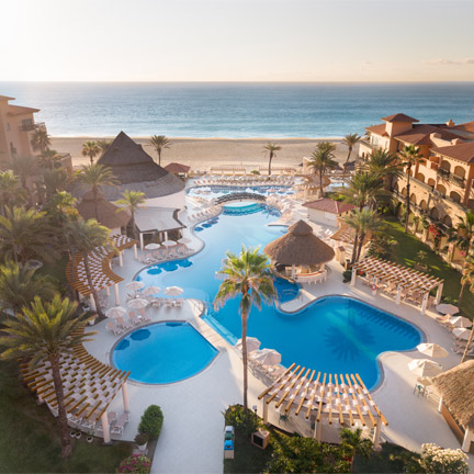 This all-inclusive resort embraces a traditional, colonial Mexican design, and reflects the beauty and splendor of Los Cabos. Located on the Sea of Cortez, the resort features 282 spacious suites, two pools, each with a swim-up bar, and four restaurants. Guests of the Preferred Club will also enjoy access to a private lounge serving daily continental breakfast, afternoon hors d'oeuvres and a selection of desserts and fine liquors. The Explorer’s Club will keep children entertained with special programs and activities, and evening hours provide adults an opportunity to enjoy some relaxing time to themselves or a rejuvenating treatment at the spa. Complimentary wireless internet access is offered throughout the resort.