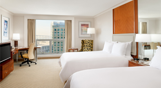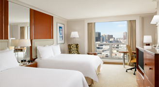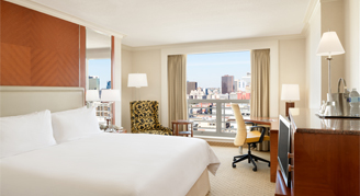 Rooms feature a view of the city. Additional amenities include a workstation, a flat-panel TV, 300-count linens, and quality bathroom features and amenities.
