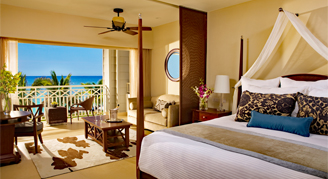 Suites feature a king sized bed, a spacious living room and dining room, a full bathroom with hydro tub, and a private, furnished terrace with hot tub and direct swim out access to pool. Suite features oceanfront views.