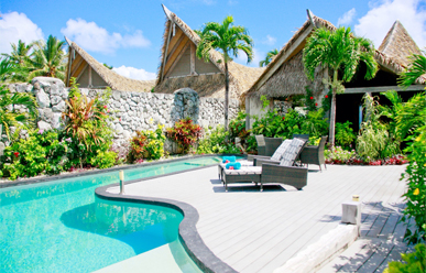 Enjoy the beautiful Aitutaki sunsets from your private beachside deck or relax in your own gated courtyard, which has a swimming pool with a cascading waterfall.