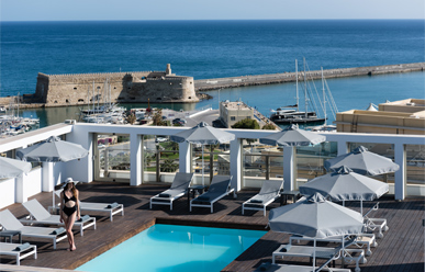 Ariadne: Located inside the hotel’s imposing atrium, this restaurant becomes an ideal place for lovers of Cretan and Mediterranean culinary delights. The Chef lovingly creates refined dishes using fresh, local products, satisfying the most demanding appetite.