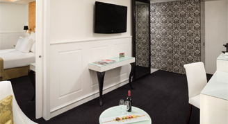 These suites feature two bedrooms, two bathrooms and a lounge. This suite combines a One-Bedroom Suite with a Deluxe Room, with one main entrance.