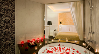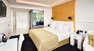 Delicate and elegant, the Supreme Rooms are romantic rooms facing an inner courtyard and are decorated in rich white and gold tones in a golden Belle Époque style. A round bathtub integrated into the room offers a romantic and cozy atmosphere.