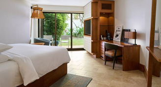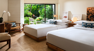 This category offers a separate bedroom, living area and full views of the Pacific from a corner suite.