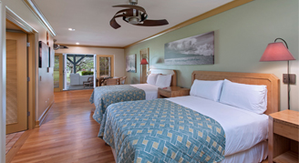 Each of the 74 rooms, including residences with kitchens and Oceanfront Bungalows, come with a private lanai and ample outdoor seating, ideal for reveling in island trade winds or admiring a colorful sunset. Most rooms are intentionally designed without clocks, radios or TV's to offer a peaceful respite.