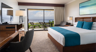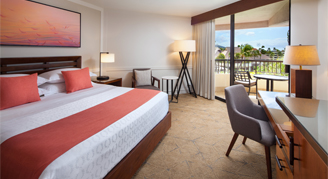 • Rooms offer modern, island-inspired décor with "Sweet Sleeper" beds and include a table and chairs, flat-screen TV, full bath amenities and a private lanai.