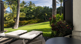 Suites feature a view of the resort from the private lanai. Additional amenities include a separate sitting area.