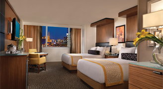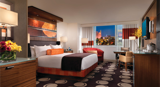 A spacious resort room equipped with everything you need to live your dreams Center-Strip. Comfort meets sophistication with luxury amenities including The Mirage Serta Perfect Sleeper® Pillow Top Mattress, 42” LCD TV, high-speed internet and a JBL Horizon Bluetooth Speaker with dual USB charging and ambient lighting.