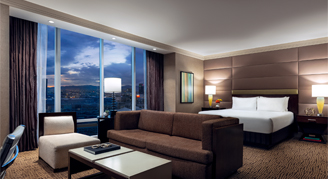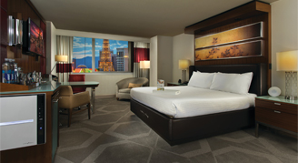 An upgraded version of the Resort Room - One King Bed. Featuring Resort Room amenities, plus these rooms have private elevators to the 24th and 25th floors, spacious bathrooms, dual sink vanity, soaking tub and separate walk-in shower in the bathroom.
