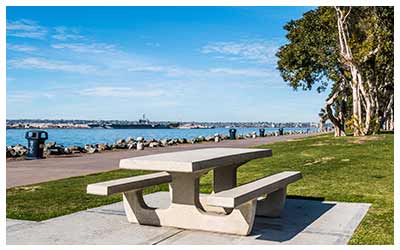 North and west of the San Diego Airport you can find Mission Beach Boardwalk. This narrow strip of land contains a beautiful oceanfront walk that runs from the South Mission Beach Jetty to the Pacific Beach pier. A great place to people watch as it’s usually crowded with in-line skaters, joggers and cyclists. There’s a lot to do here as well, you can enjoy a picnic and take in the scenery, or shop the many surf and swimwear shops. Be aware, these beaches get very crowded, especially in the summer, so go before noon if you want to find parking close by. We recommend staying at Hyatt Regency Mission Bay Spa and Marina, a quick five-minute drive or a very nice 25-minute walk away from the Boardwalk.