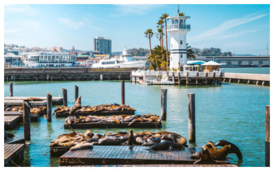 Fisherman’s Wharf is a tourist friendly historical area that includes Pier 33 (where you’ll catch your ferry to Alcatraz, which housed high-profile criminals like Al Capone) and Pier 39, where you can watch the goofball sea lions (July to mid-May). Souvenir shops and eateries abound, as well.