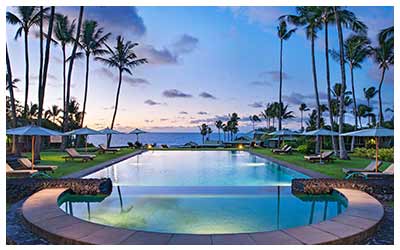 This small town is a peaceful retreat, and Hana Maui Resort embodies this with a focus on wellness and adventure. They provide shuttles to the stunning beaches nearby, including the famous black sand beach. On property, you can take part in many cultural and leisurely activities such as ukulele lessons, yoga/meditation sessions, and swimming in the infinity pool with an unobstructed view of the Pacific Ocean.