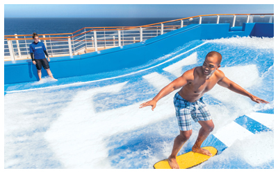 I recently sailed aboard Navigator of the Seas for a 4-night sailing which stopped at Catalina Island and Ensenada, and cruisers also enjoyed a day at sea (and a partial day at sea after the departure from Los Angeles). While I continued to be amazed at the cavernous aspects of Royal Caribbean’s newer ships, Navigator of the Seas feels very intimate while being convivial. This ship has all of the popular hallmark offerings that abound on most Royal Caribbean ships (no charge by the way): Flowrider Surf Simulator, laser tag, rock climbing wall, 2 thrilling water slides, a miniature golf course, swimming pools for families and a separate one for adults only (in the Solarium), whirlpool tubs and a fitness room. Navigator also has a 60-minute Escape Room: The Observatorium which is an immersive puzzle-building and deconstruction experience. Pro tip: To avoid long lines and crowds at some of the more popular onboard enticements (such as the waterslides), try to experience these exciting offerings midday on port days while most guests have left the ship for tours and shopping landside).