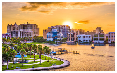 Jupiter is known for its golf courses and rich marine environment, including the Intracoastal Waterway which encompasses miles of public beaches. The area offers boating, kayaking and paddle boarding opportunities. Or just walk on the mile-long beach with limestone cliffs on Jupiter Island. Sarasota, Florida offers a vibrant arts and architecture scene, as well as an opera house.