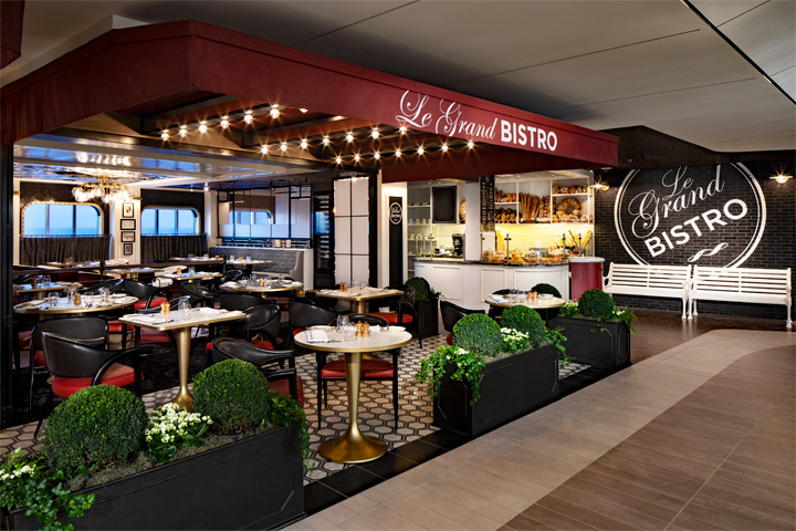 Le Grand Bistro: Inspired by classic French bistros, the mouthwatering sights, scents, and sounds of a bustling boulangerie-patisserie are sure to excite and entice. With an ambience that changes from morning to evening and seating options from the planter-edged sidewalk to the inner café offering stunning views of the sea; every time you eat here it's a whole new experience. This restaurant is available for an additional cost.