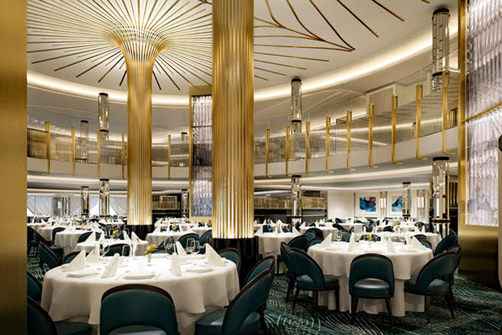 Britannia Restaurant: This main restaurant invites you to enjoy breakfast, lunch and dinner with a real sense of occasion. Dining is a highlight of each Cunard voyage and the grandeur of the Britannia Restaurant ensures it's always memorable, especially on Gala Evenings. Experience a stylish and vibrant atmosphere and be tempted by freshly prepared dishes which range from twists on traditional favorites to contemporary selections. If you decide to join us here for breakfast or lunch you'll find it traditional and relaxed, whereas at dinner this glamorous venue really sparkles. Choose from 6pm, 8pm or open dining. with last orders at 9pm. Reservations can be made in advance.