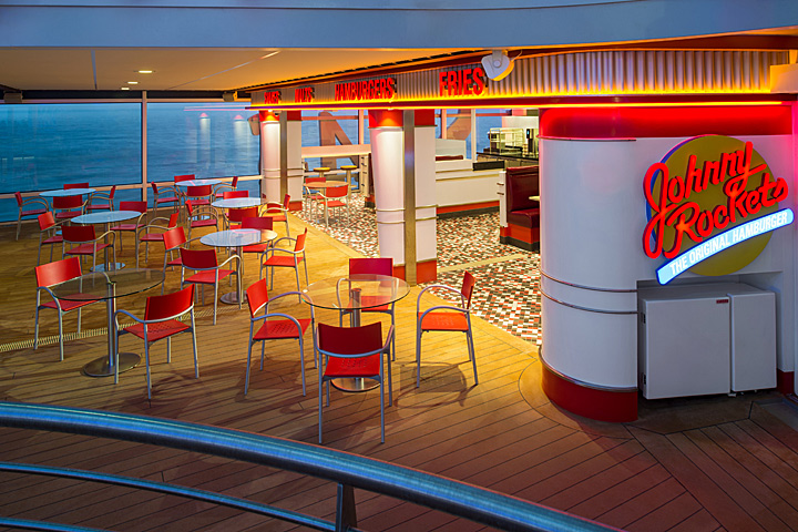 Johnny Rockets® Express: All your favorite diner classics are just a skip and a sock hop away from the pool deck at Johnny Rockets® Express. Burgers, fries, handspun milkshakes — and even spiked shakes for those who want something a bit more spirited. This Restaurant available for an additional cost.