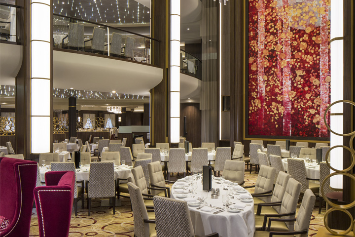 Main Dining Room: Sweeping, multi-level ambience, world-class cuisine and extraordinary personal service from the dedicated wait staff. Royal Caribbean's main dining room serves exceptional, multi-course meals for breakfast, lunch and dinner.